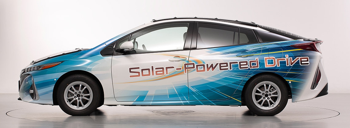 Toyota test samen met NEDO en Sharp het nut van zonnepanelen voor geëlektrificeerde auto’s. Een Toyota Prius Plug-in Hybrid werd voorzien van een speciaal zonnelaadsysteem dat de batterij van de Prius oplaadt. De experimenten moeten uitwijzen of het systeem de actieradius kan vergroten en het brandstofverbruik van geëlektrificeerde auto’s kan verlagen.